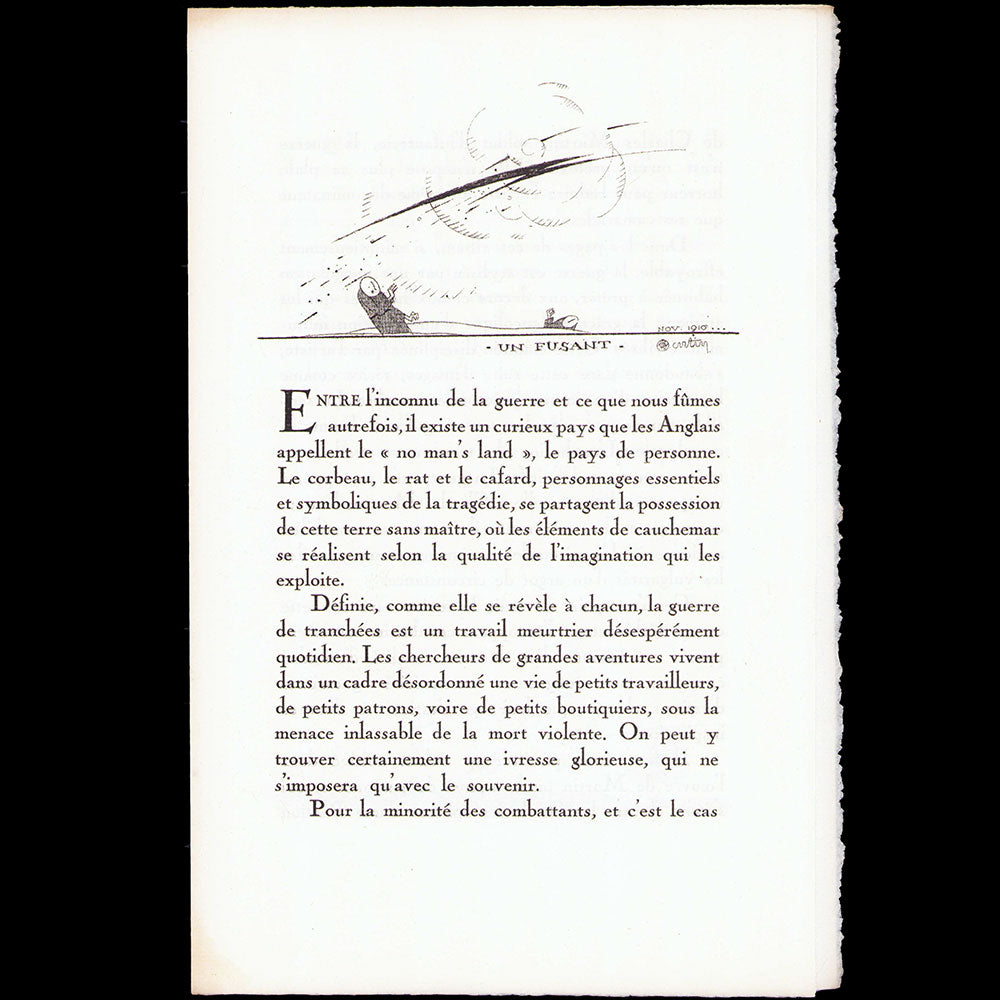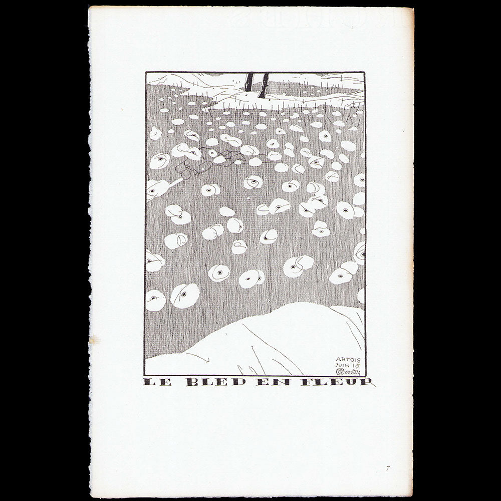 Bon exemplaire de l'ouvrage de Charles Martin publié en 1917 sous le titre Sous les Pots de Fleurs combinant illustrations et poèmes en prose. Cet ouvrage est dédié par Martin "à tous mes anciens amis du Bon Ton" et "à tous les camarades qui ont besogné dans les borres de Perthes, Roclincourt, d'Avocourt, des Marquises."