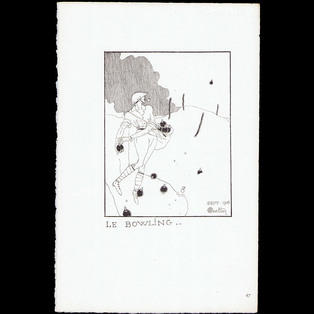 Charles Martin est un important illustrateur de la première moitié du XXème siècle. Il collabore à plusieurs publications traitant de la mode dont la Gazette du Bon Ton, le Journal des Dames et des Modes, Vogue ou encore Femina. Avant le début de la première guerre mondiale, l'éditeur Lucien Vogel lui confie l'illustration de Sports et Divertissements d'Erik Satie. L'ouvrage ne parait qu'àprès la guerre et Charles Martin décide de faire une nouvelle série d'illustrations pour ce livre finalement publié vers 1920.